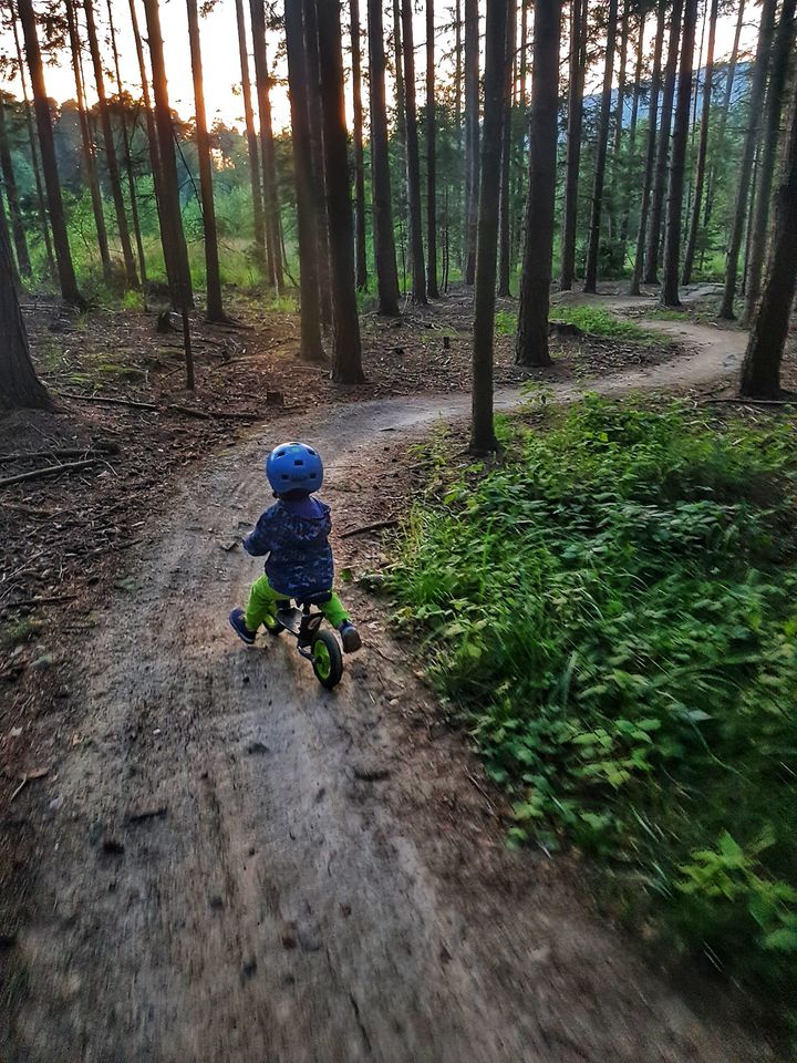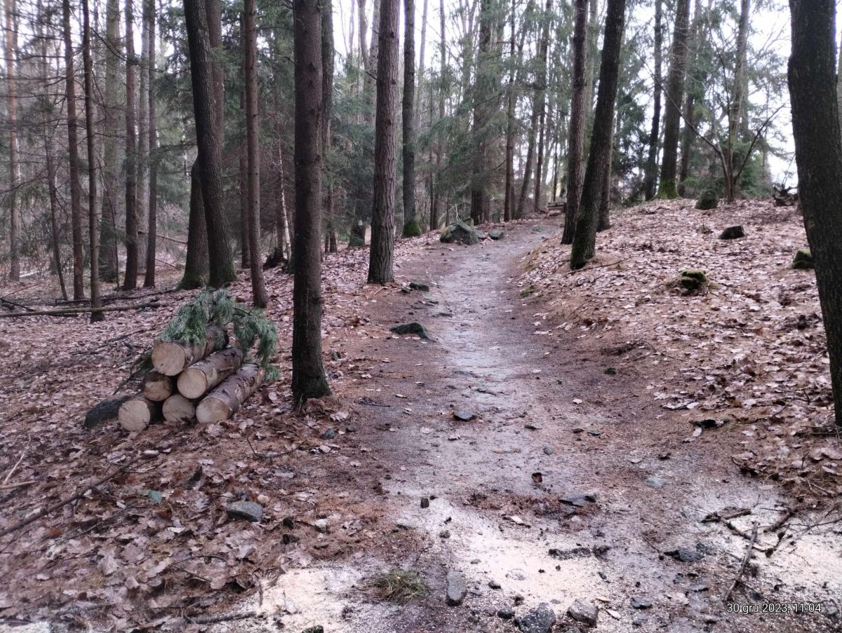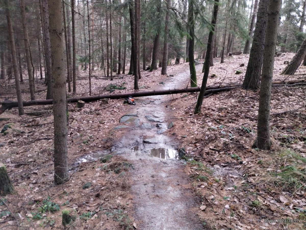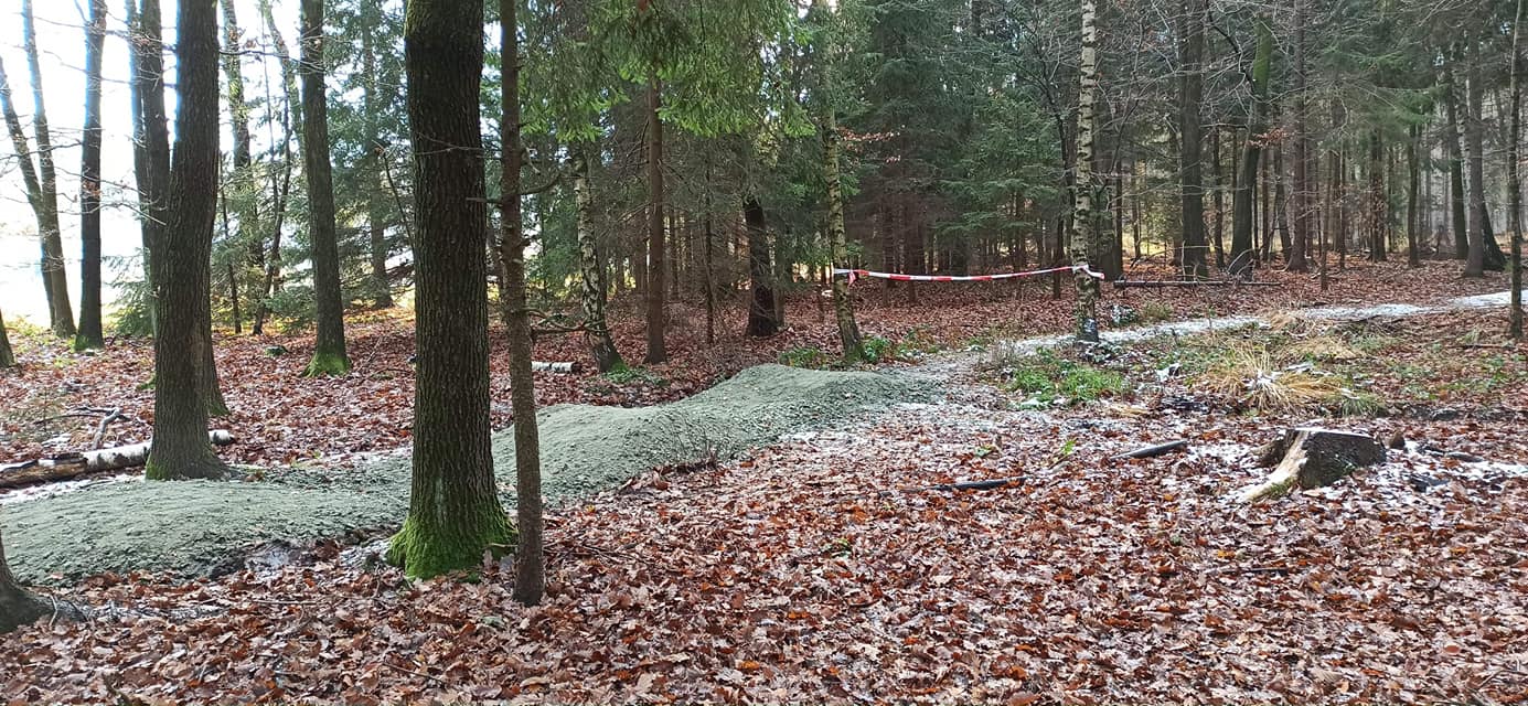 - aktualizacja 06.02.2019: UWAGA! Wczoraj przewróciło się drzewo na ścieżkę! Znajduje się ono w miejscu gdzie są dwa stoliki do skakania i zaraz za nimi element pumptracka - to tam leży konar. Zgłosiliśmy już do Nadleśnictwa prośbę o usunięcie drzewa (bez zgody sami nie możemy tego robić). Uważajcie na trasie! Damy znać jak trasa będzie już przejezdna.