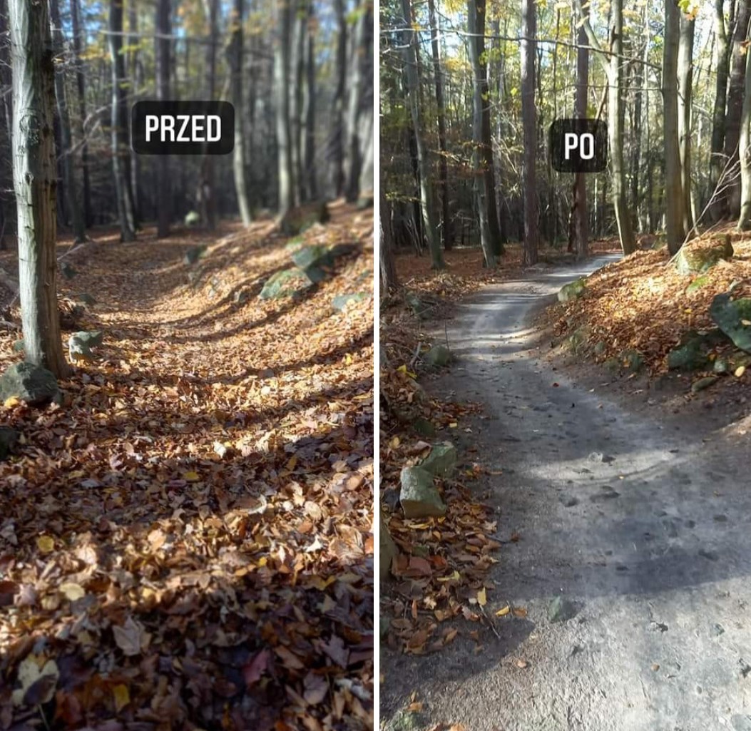 Dzisiaj Mariusz z Sulistrowic (ten sam Mariusz który pomaga nam od 10 lat i jest w naszym Stowarzyszeniu od zawsze) uprzątnął liście ze ścieżki - a było tego naprawdę dużo!!! Końcówka trasy wymaga jeszcze prac, bo zabrakło benzyny ;)