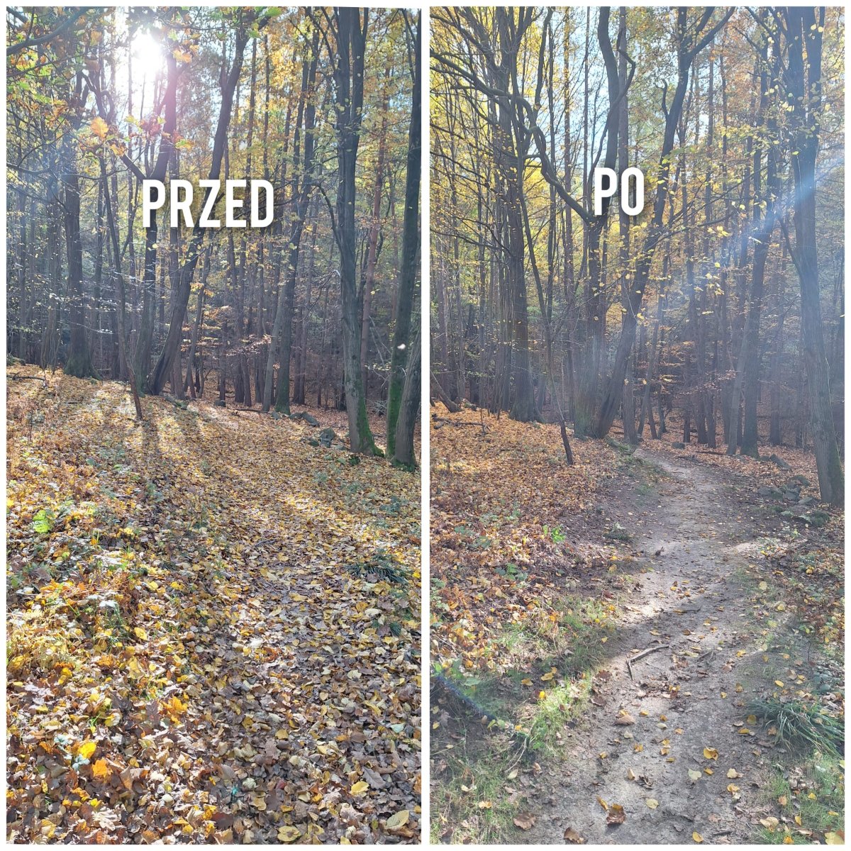 2. Prawie cała trasa została uprzątnięta z liści. Reszta prac zaplanowana jest na weekend. Dziękujemy za prace z dmuchawą szczególnie Mateuszowi z rowerowej ekipy Endurocorp oraz Kamilowi z Zielonego Wzgórza.