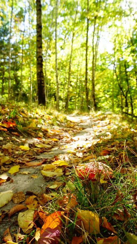 Ścieżka została uprzątnięta z jesiennych liści, jest super sucha i gładka. Warunki do jazdy są po prostu perfekcyjne zwłaszcza po godzinie 10, kiedy zejdą poranne mgły i pięknie wychodzi niskie jesienne słońce.