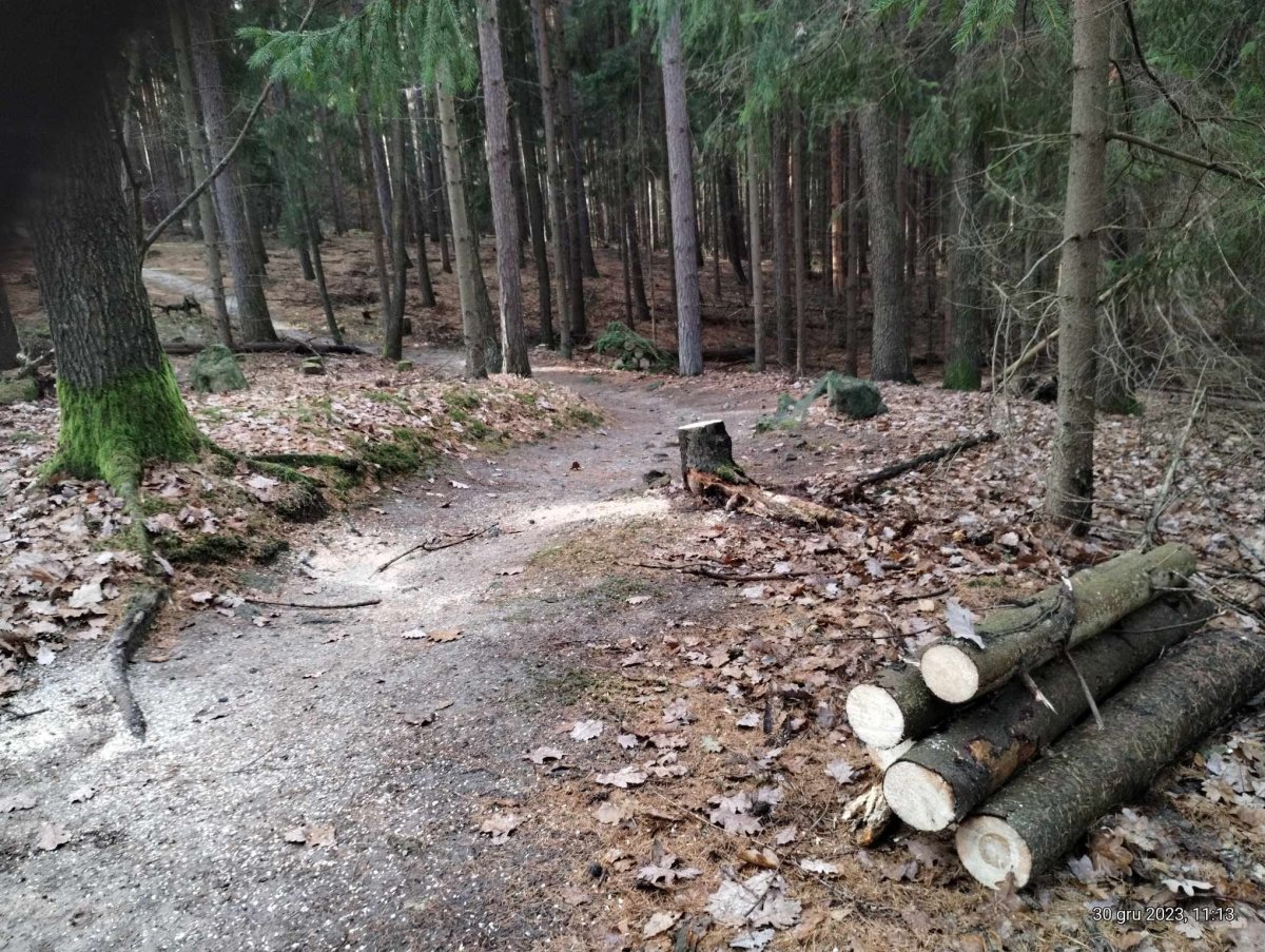Dziękujemy Nadleśnictwu Miękinia za usunięcie martwych i suchych drzew z okolic ścieżki. Dzięki temu wszyscy jeździmy bezpieczniej.