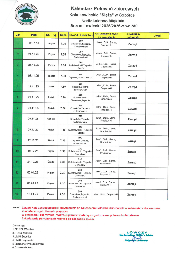 - Straż Leśna: kom. 664045934.
